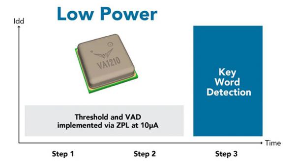 借助語音喚醒(WoV),VA1210可以通過骨傳導(dǎo)持續(xù)監(jiān)控TWS耳機(jī)佩戴者的語音活動(dòng),同時(shí)由于Vesper的專利“ZeroPower Sensing”技術(shù),該傳感器僅消耗10µA的電流。VA1210可以準(zhǔn)確檢測(cè)語音活動(dòng),并且僅在有語音時(shí)開啟系統(tǒng)處理器。這使TWS耳機(jī)和其他系統(tǒng)設(shè)計(jì)人員可以大幅降低平均功耗。
