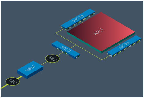 大電流傳輸通過模塊化電流倍增器 (MCM) 模塊實現(xiàn),這些模塊布置在主板或處理器基板上,與處理器相鄰。將 MCM 布置在基板上,不僅可最大限度降低 PDN 損耗,而且還可減少電源所需的處理器基板 BGA 引腳。LPD 旨在支持 OCP 加速器模塊 (OAM) 卡及定制 AI 加速器卡的供電需求和獨特封裝。