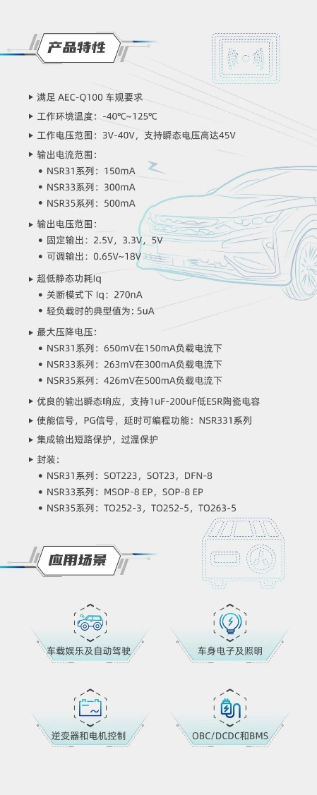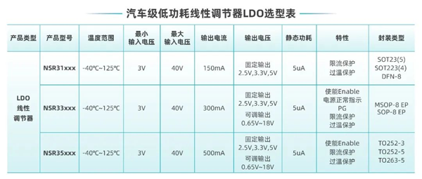 超低靜態(tài)功耗LDO!納芯微推出業(yè)界領(lǐng)先車規(guī)級(jí)NSR31/33/35系列芯片