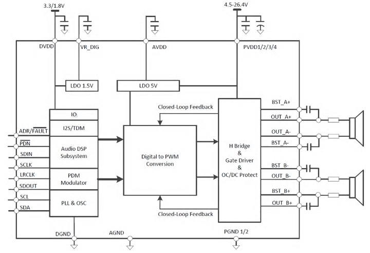 • PVDD:4.5V至26.4V