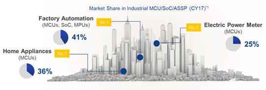 圖 1:瑞薩在全球工業(yè) MCU/SoC/ASSP 市場的市場份額(2017 年)