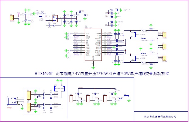 但是兩節(jié)18650鋰電串聯(lián)的輸出電壓是6V-8.4V,在電池直供的情況每個(gè)聲道只能提供7W/4歐的功率輸出,相比較鉛酸電池供電功率明顯偏小。如何在兩節(jié)鋰電供電提供超過(guò)20W/聲道的功率輸出?成為一直以來(lái)困擾電子工程師的主要難題,F(xiàn)階段主要采用的是升壓+功放芯片的解決方案,外圍元器件多、PCB設(shè)計(jì)復(fù)雜。深圳市永阜康科技有限公司總結(jié)市場(chǎng)應(yīng)用痛點(diǎn),現(xiàn)在大力推廣一顆2X30W雙聲道/50W單聲道D類音頻功放芯片-HT81696,可以廣泛應(yīng)用于廣場(chǎng)舞音箱、智能音箱、便攜式藍(lán)牙音響等產(chǎn)品領(lǐng)域,以其高效率大功率、應(yīng)用簡(jiǎn)單、高性價(jià)比等優(yōu)點(diǎn),加速實(shí)現(xiàn)在戶外拉桿廣場(chǎng)舞音箱等領(lǐng)域、鋰電池替換鉛酸電池成為主流供電方式。