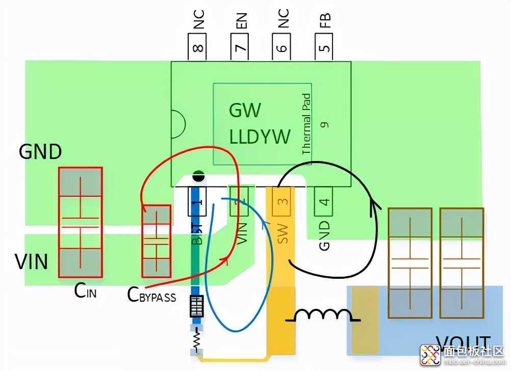 - 對(duì)于BUCK芯片而言,要想使輸入環(huán)路盡可能小,電感要靠近芯片SW引腳放置