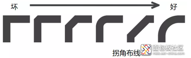 - 如果將拐角布線彎成直角,轉(zhuǎn)角處的阻抗就會(huì)發(fā)生變化