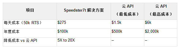 有許多因素會決定獨(dú)立ASR設(shè)備的成本。在這個(gè)特定示例中,假設(shè)Achronix ASR加速解決方案是通過基于FPGA的PCIe卡提供,并集成到基于x86架構(gòu)的2U服務(wù)器中。該設(shè)備從系統(tǒng)集成商那里出售,價(jià)格可能為50,000美元,而每年運(yùn)行服務(wù)器的成本可能是這個(gè)成本的兩倍。這樣一來,本地ASR設(shè)備第一年的費(fèi)用就達(dá)到了10萬美元。將這種本地解決方案與云API服務(wù)進(jìn)行比較,終端用戶可以在第一年節(jié)省5到20倍的費(fèi)用。