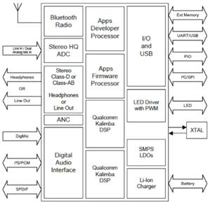 圖示3-大聯(lián)大詮鼎基于Qualcomm產(chǎn)品的無線藍(lán)牙耳機(jī)方案的方塊圖