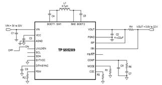 • 能夠支持最高60W輸出,是一顆四管集成buck-boost,具有極高的功率密度。