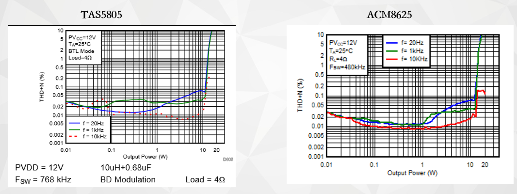 TAS5805和ACM8625在性能方面的比較