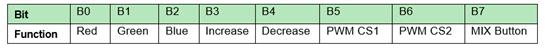 B5和B6 bit負責(zé)選擇PWM信號將通過的引腳(顏色):這些bit的顏色指定如表3所示。最后一個bit B7負責(zé)激活自動混合功能。