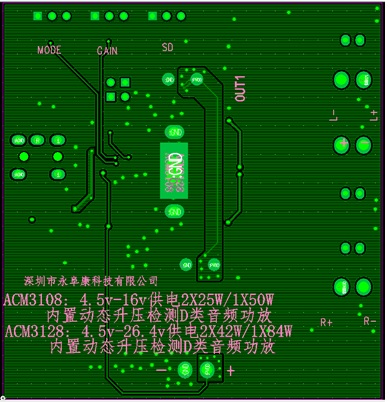 動態(tài)調(diào)整升壓CLASS H功能、25W雙聲道/50W單聲道D類音頻功放IC |