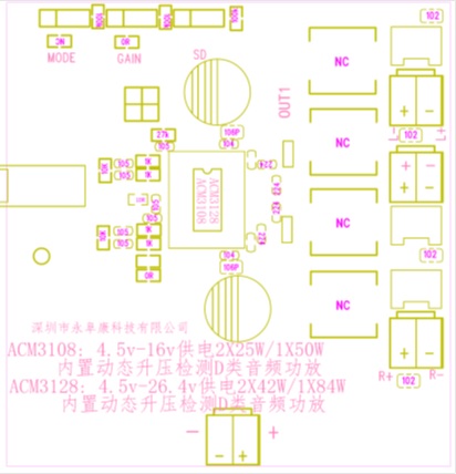 2×41W立體聲 /1×82W單通道數(shù)字輸入功放、內(nèi)置DSP小音量低頻增強等算法 |