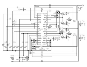 3.3V 直流母線在寬帶網(wǎng)絡(luò)系統(tǒng)中廣受歡迎,用于各種較低電壓,為 DSP、ASIC 和 FPGA 供電。這些較低的電壓范圍為1V至2.5V,通常需要高負(fù)載電流。為了保持高轉(zhuǎn)換效率,降壓轉(zhuǎn)換器的功率MOSFET導(dǎo)通損耗必須降至。問題在于,3.3V總線還頻繁使用亞邏輯電平MOSFET。這種MOSFET具有相對較高的RDS(ON),將轉(zhuǎn)換器的滿載效率限制在 85% 左右。更有效的解決方案是使用邏輯電平MOSFET,其R值非常低DS(ON)但需要一個 5V 電源。LTC1876 通過將一個 1.2MHz 升壓型穩(wěn)壓器 (其從一個 3.3V 輸入產(chǎn)生一個 5V 偏置電源)與兩個提供低電壓輸出的降壓型控制器相結(jié)合,允許使用邏輯電平 MOSFET。通過將所有三個穩(wěn)壓器集成到單個 IC 中,LTC1876 實(shí)現(xiàn)了小型且成本低廉的高效電源。