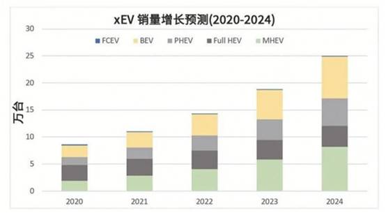 預(yù)期所有類型的電動車(xEV)的銷售在未來幾年將呈現(xiàn)加速增長,其中BEV和MHEV的增長最為強(qiáng)勁。
