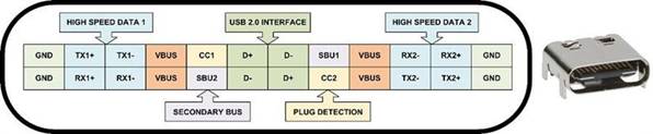 市場(chǎng)上推出的是USB Type-C,它以在將連接器插入U(xiǎn)SB端口時(shí)無(wú)論連接器的方向如何都能正常工作而聞名。但是,USB端口和連接并不像人們想象的那么簡(jiǎn)單。在推出Type-C和USB 3.x及更進(jìn)一步之前,Type-A和Type-B的USB連接器主要有4根線,VBUS,GND,D +和D-。顧名思義,這些用于為外設(shè)(VBUS,GND)供電,并在外設(shè)和主機(jī)(D+,D-)之間傳輸數(shù)據(jù)。C 型插座端口如圖 2 所示。