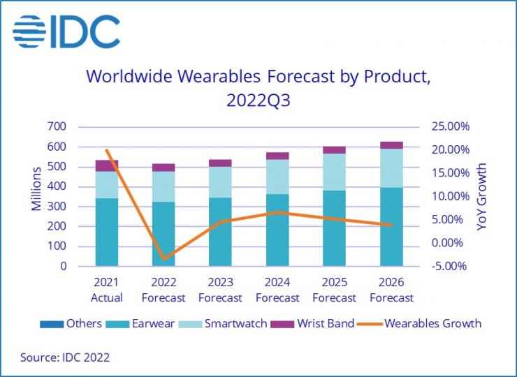 根據(jù)業(yè)內(nèi)媒體的數(shù)據(jù)趨勢(shì),預(yù)計(jì)可穿戴設(shè)備市場(chǎng)的五年復(fù)合年增長(zhǎng)率為5.1%,到2026年底單位出貨量將達(dá)到6.283億。