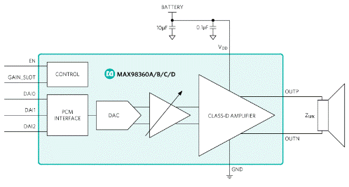 圖3.MAX98360數(shù)字D類放大器