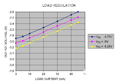 圖3.圖1電路在V時的負載調整率在電平為 -4.75V、-5V 和 -5.25V。