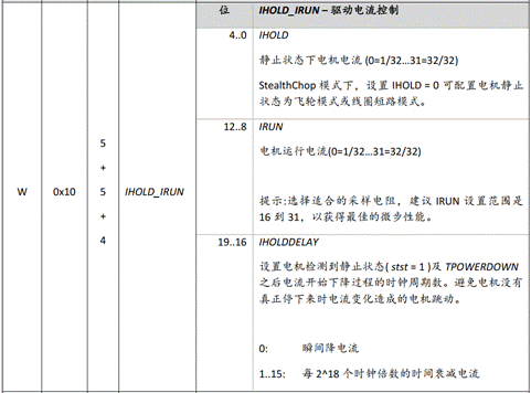 圖3.IHOLD_IRUN 電流寄存器表