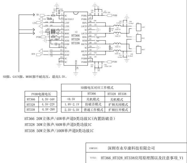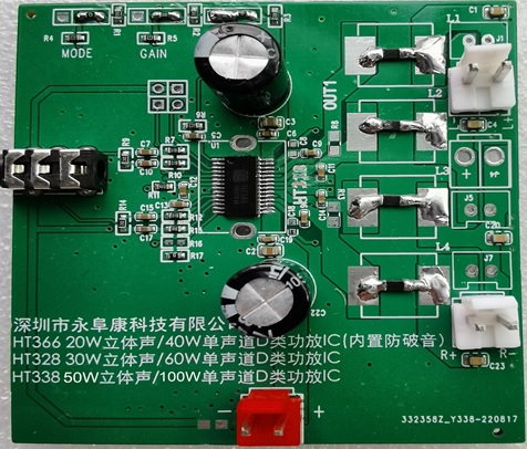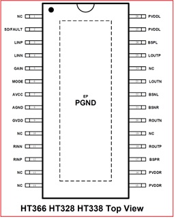 HT366/HT328/HT338 最新20W、30W、50W雙聲道D類功放IC系列