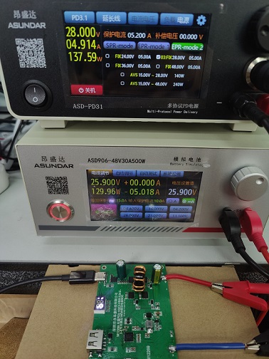 3-8節(jié)升降壓型雙向快充140W鋰電充放電芯片M12269,集成PD3.1/QC3.0協(xié)議,最大輸入/輸出功率140我,應用于7節(jié)鋰電移動電源雙向快充性能測試