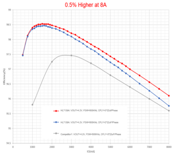 在使用1*22uF/CFLY的情況下,HL7139A仍能提高0.5%的效率。