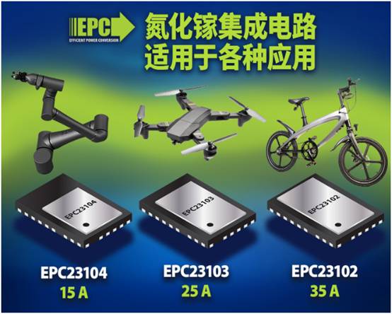 繼早前推出的100 V、35 A功率級(jí)IC(EPC23102)之后,EPC公司新推兩款新型100V功率級(jí)IC,其額定電流分別為15A(EPC23104)和25A(EPC23103)。