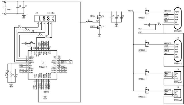 其配合極簡的外圍電路,即可組成支持LED燈或LED屏的22.5W多口移動電源。