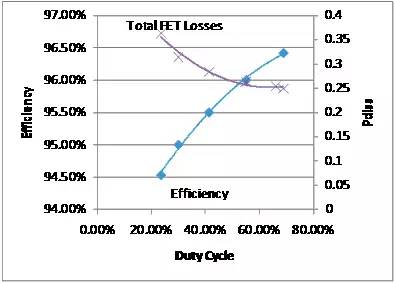 圖 11—總損耗與效率和占空比的關(guān)系