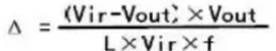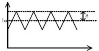 上圖是開關(guān)電源電感L內(nèi)的電流波形,其紋波電流△I可由下式算出: