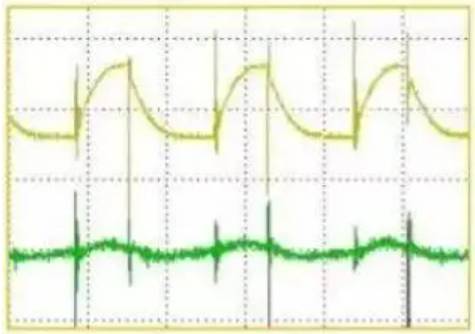 另外,SWITCH一般選用雙極性晶體管或者MOSFET,不管是哪種,在其導(dǎo)通和截止的時候,都會有一個上升時間和下降時間。這時候在電路中就會出現(xiàn)一個與SWITCH上升下降時間的頻率相同或者奇數(shù)倍頻的噪聲,一般為幾十MHz。同樣二極管D在反向恢復(fù)瞬間,其等效電路為電阻電容和電感的串聯(lián),會引起諧振,產(chǎn)生的噪聲頻率也為幾十MHz。這兩種噪聲一般叫做高頻噪聲,幅值通常要比紋波大得多。