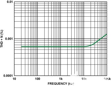 圖2顯示了音頻范圍內(nèi)的總諧波失真和噪聲。誤差隨頻率增加,但在0 kHz時(shí)總誤差仍小于0007.20%。圖3顯示了與IC的連接。