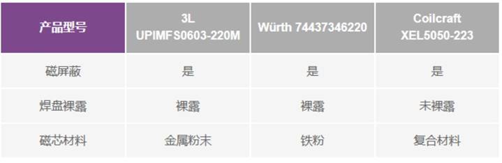 表1.測試所用電感的技術(shù)規(guī)格比較
