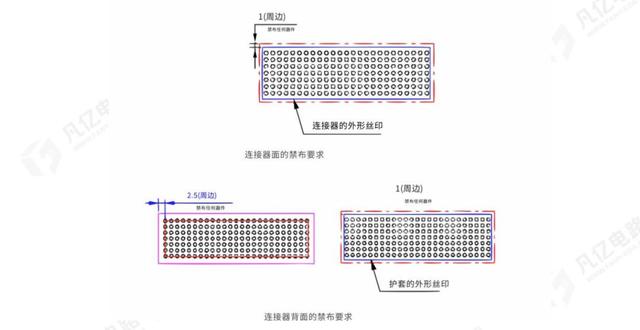 圖1-2 彎/公、彎/母壓接連接器件布局禁布區(qū)