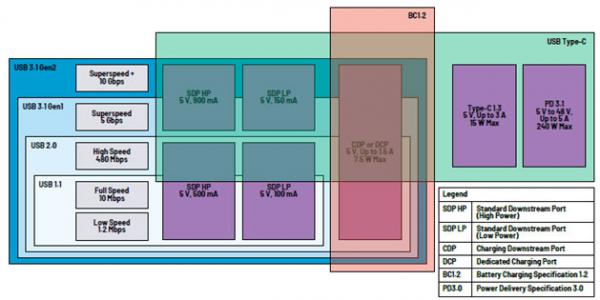 圖1.每個USB規(guī)格的功率容量