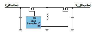 圖1.利用降壓開關(guān)穩(wěn)壓器生成負(fù)電壓的反相降壓-升壓拓?fù)?/font>
