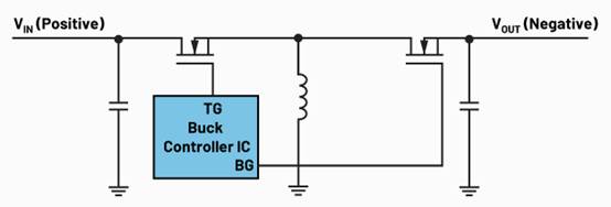 圖1.利用降壓開(kāi)關(guān)穩(wěn)壓器生成負(fù)電壓的反相降壓-升壓拓?fù)?br>