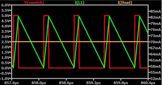 我們的設(shè)計(jì)目標(biāo)是電感紋波電流為 30%,這意味著和電感電流應(yīng)為 80.5 mA 和 59.5 mA: