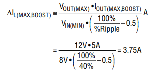 式中:IOUT(MAX,BOOST) 是升壓區(qū)中需要的最大輸出負(fù)載電流%Ripple 為30%至 50%。