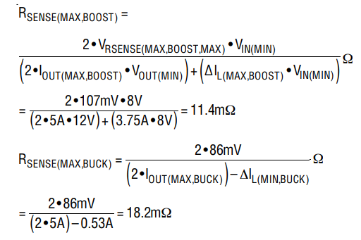 現(xiàn)在,計(jì)算升壓區(qū)和降壓區(qū)中的最大 RSENSE 阻值:
