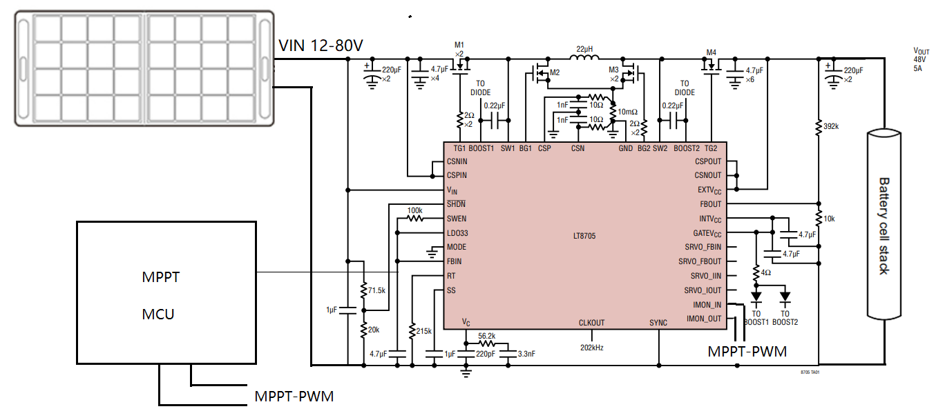 今天我們要講到的是,ADI推出的LT8705降壓 - 升壓控制器 提供了一種極好的方法來解決工作電壓高達(dá)80V的系統(tǒng)中的可變性問題,因?yàn)樗梢越邮?.8至80V的輸入電壓,并在輸出端提供1.3V至80V的電壓,可以解決當(dāng)下流行的4塊光伏板串聯(lián)輸入充電(電壓高達(dá)72V)與12V車載充電的寬范圍輸入轉(zhuǎn)換的問題,這使得設(shè)計(jì)能夠與眾多太陽能電池板設(shè)備連接,通過運(yùn)行一個(gè)程序來實(shí)現(xiàn)最大功率點(diǎn)跟蹤(MPPT) 和最大限度地利用太陽能電池轉(zhuǎn)換的能量來進(jìn)一步改進(jìn)系統(tǒng)。
