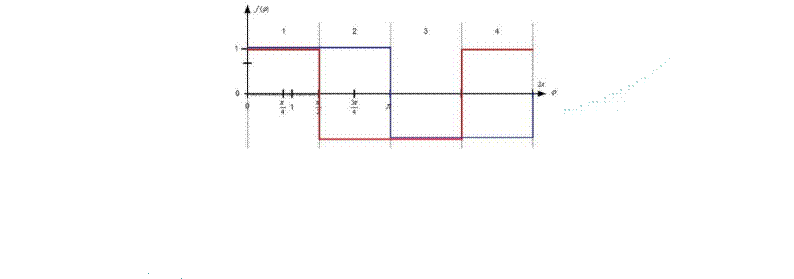 典型的步進電機有50個極(Poles),就是200個整步(Full Steps),也就是整步情況下每步1.8° 角度,電機旋轉(zhuǎn)一周需要360°。但是也有些步進電機的步距角更小比如整步需要800步的。起初,這些步進電機被用作整步或者半步模式下,矢量電流提供給電機線圈A(藍色) 和線圈B(紅色) 矩形曲線圖。描述了整個一個周期360°的曲線。在圖3和圖4中很明顯看到電機線圈在90°換相點處線圈電流要 么是最大電流(full power) 要么是沒有電流。