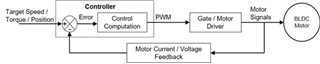 圖 1:無(wú)傳感器 BLDC 電機(jī)系統(tǒng)的典型控制環(huán)路