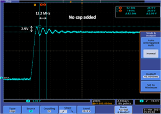 圖 3 – 測量在未采用 RC 緩沖器的情況下 VDS 振鈴的 fo