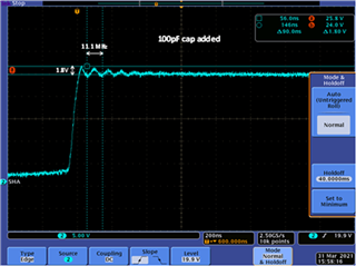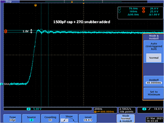圖 5 – 使用計算得出的 RC 緩沖器值來抑制 MOSFET 振鈴