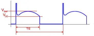 圖 1 說明了正常旋轉(zhuǎn)期間的輸出電壓形狀并顯示了 EMF 效應(yīng):