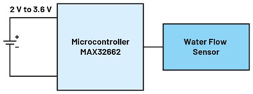 采用電池供電的電路必須具備高能效,這樣電池才能長時間持續(xù)供電。為此,應當選擇節(jié)能型元器件并將其整合到系統(tǒng)中。電路中的構建模塊越少,整個系統(tǒng)的能效就越高。圖1所示的電水表就是一種電池供電設備。該系統(tǒng)采用MAX32662微控制器,僅有一個電源電壓。輸入電壓介于1.71 V和3.63 V之間。