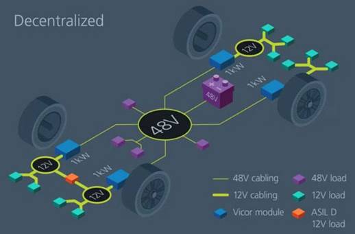 圖 2:通過(guò)為關(guān)鍵系統(tǒng)提供 48 V 電源,汽車(chē)設(shè)計(jì)師可以減少線(xiàn)束的重量和成本。(圖片來(lái)源:Vicor)