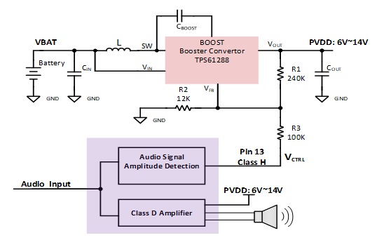 動態(tài)調(diào)整升壓CLASS H功能、25W雙聲道/50W單聲道D類音頻功放IC |