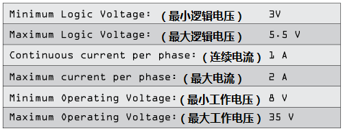 因為A4988內(nèi)置了譯碼器,我們可以可以通過控制器的2個引腳來控制步進(jìn)電機,一個控制旋轉(zhuǎn)方向,另一個控制步數(shù)。A4988提供了五種不同的微步控制:全步(full-step),半步(haft-step),四分一步(quarter-step),八分之一步(eight-step)和十六分之一步(sixteenth-step)。此外,它還配備了一個調(diào)節(jié)電流輸出、過熱保護(hù)和過流保護(hù)的電位計。A4988的邏輯電壓范圍是:3~5.5V,如果配備較好的散熱條件每相最大電流可達(dá)2A,在沒有配備散熱器的情況下,每相連續(xù)電流最好控制在1A范圍內(nèi)。