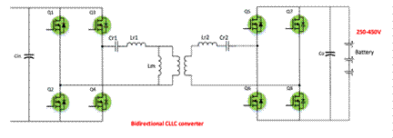 DC-DC級(jí)通常采用隔離式拓?fù),使用變壓器提供隔離,主要目的是根據(jù)電池的充電狀態(tài)調(diào)節(jié)輸出電壓。盡管可以采用半橋拓?fù)洌?dāng)前主要采用雙有源橋(DAB)轉(zhuǎn)換器方案,例如諧振轉(zhuǎn)換器(比如LLC、CLLC)或相移全橋 (PSFB)轉(zhuǎn)換器。近來(lái),諧振轉(zhuǎn)換器,特別是LLC和CLLC,因其具備多項(xiàng)優(yōu)勢(shì)而受到廣泛關(guān)注,具體優(yōu)勢(shì)包括寬軟開關(guān)工作范圍、雙向工作能力以及將諧振電感和變壓器整合到單個(gè)功率變壓器中的便利性。